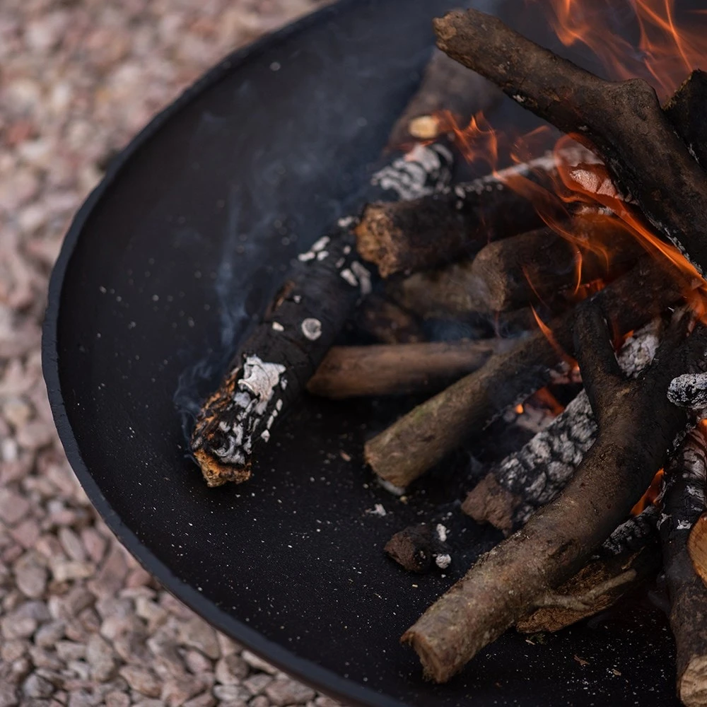 For outdoor use only. Keep children and pets away from the brazier when lit. Always position away from buildings on a safe non-flammable surface. If using on a paved patio, place on an additional protective paving stone made from solid natural stone or concrete at least 5cm thick. This will avoid possible discolouration and cracking of your patio, as some mock slabs made from resin or ceramic may be susceptible to heat damage. Only for use with logs or charcoal.
