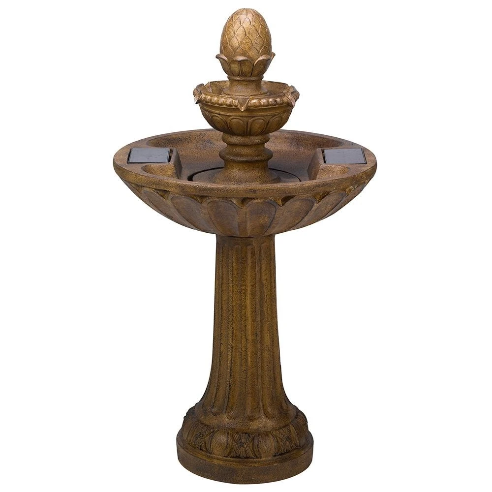 Powered by solar, a low-voltage water pump continually recirculates water from the main bowl reservoir.