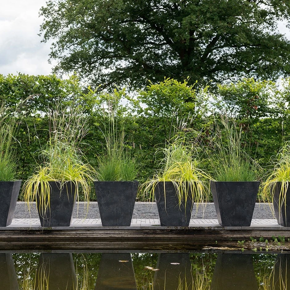 Ideal for modern gardens, these smart black planters are made from lightweight stone composite so they’re easier to move than heavy clay, and frost resistant too.
