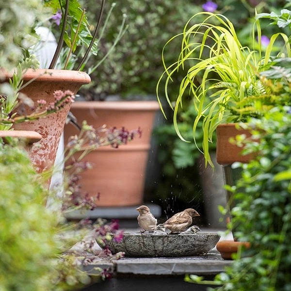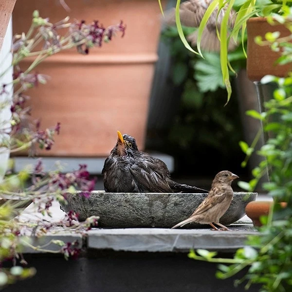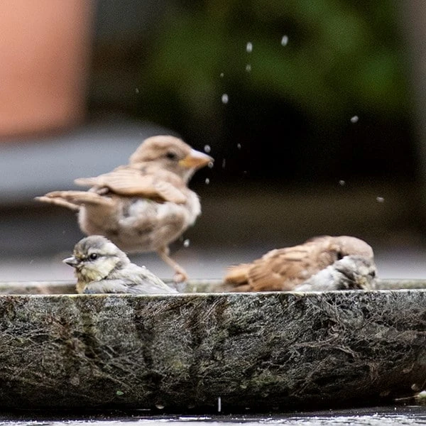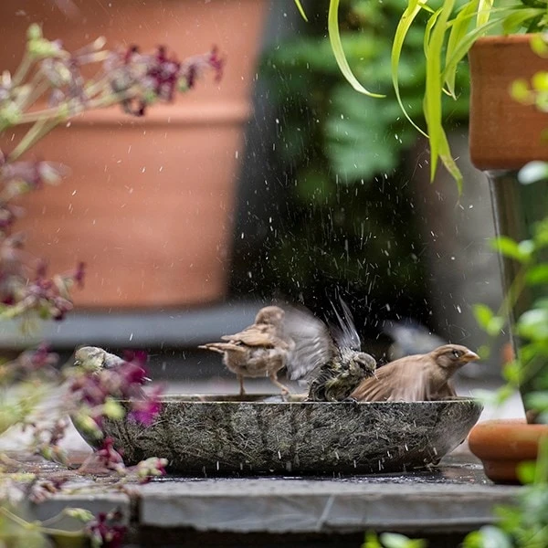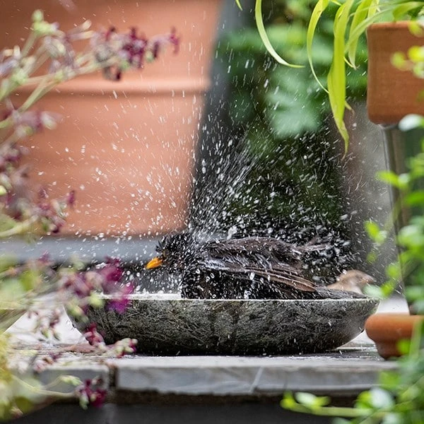 The heavy weight means it will be more than stable enough to support the splashing of large garden birds without tipping. Supplied with optional stick-on pads to protect delicate surfaces if using indoors.