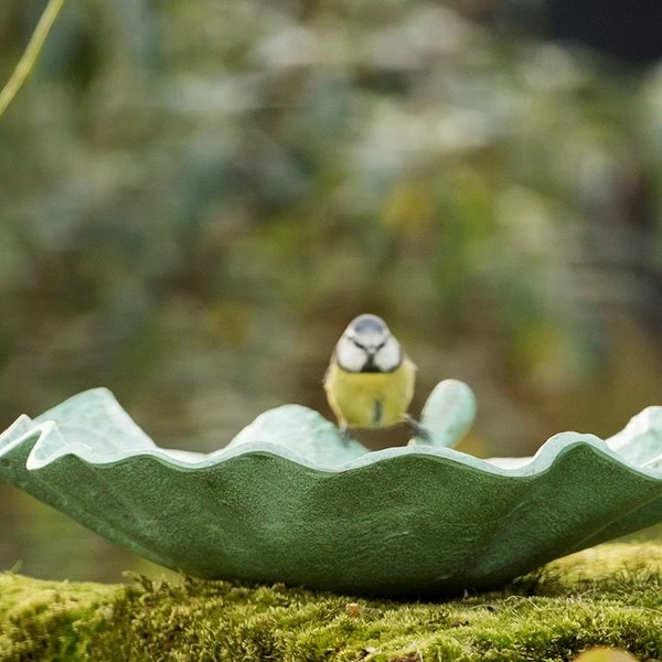 Create a garden oasis for our feathered friends with this antique-style leaf bird bath. Made from strong cast aluminium with an attractive verdigris patina, the bath is sealed with a clear lacquer for extra protection against rust.